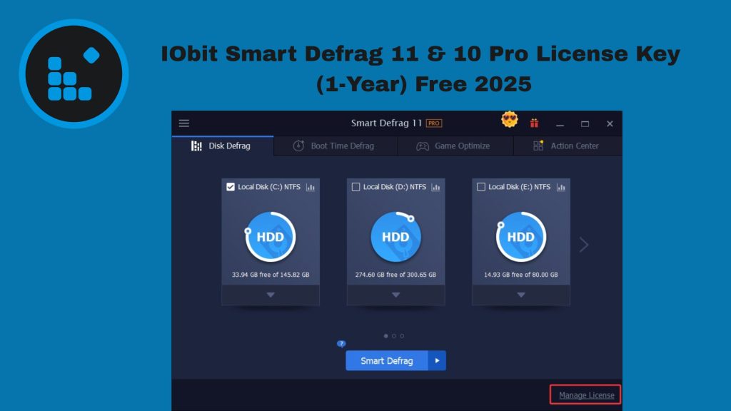 IObit Smart Defrag 11 & 10 Pro License Key (1-Year) Free 2025
